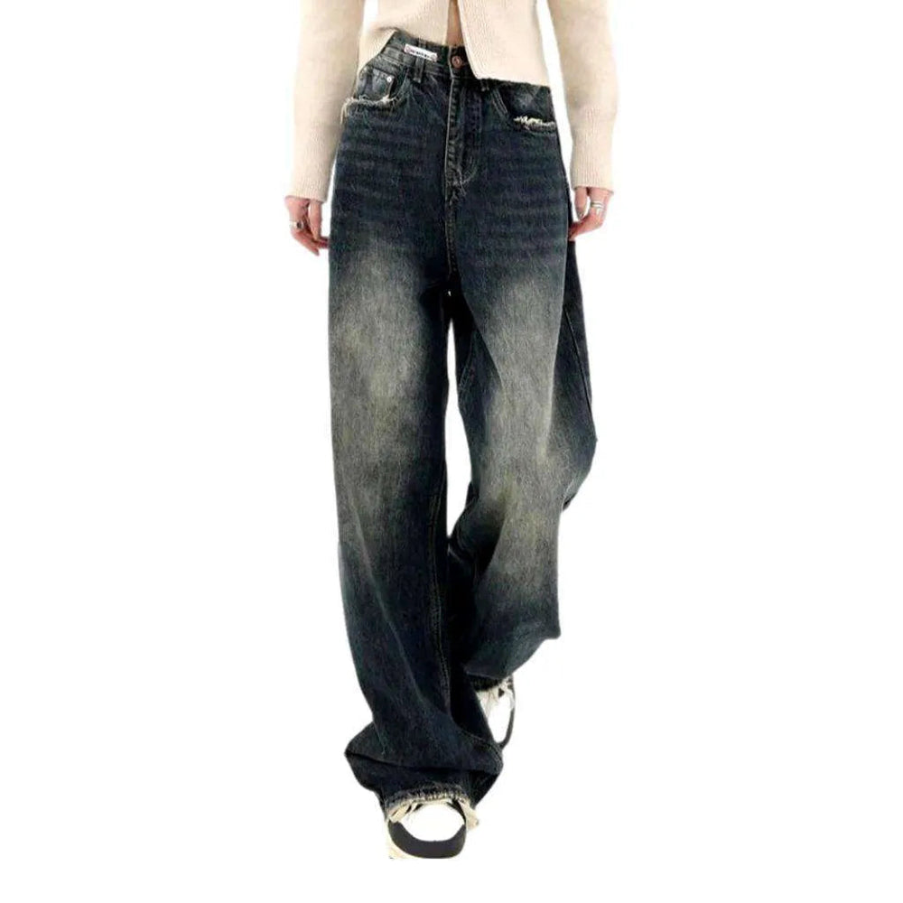 Introducing our 2024 Spring Collection's dark-wash women's distressed jeans – the epitome of street flair and edgy fashion!