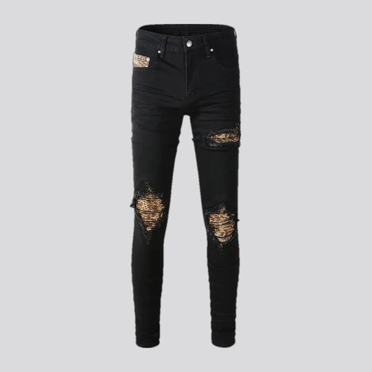 Men's black-patches jeans